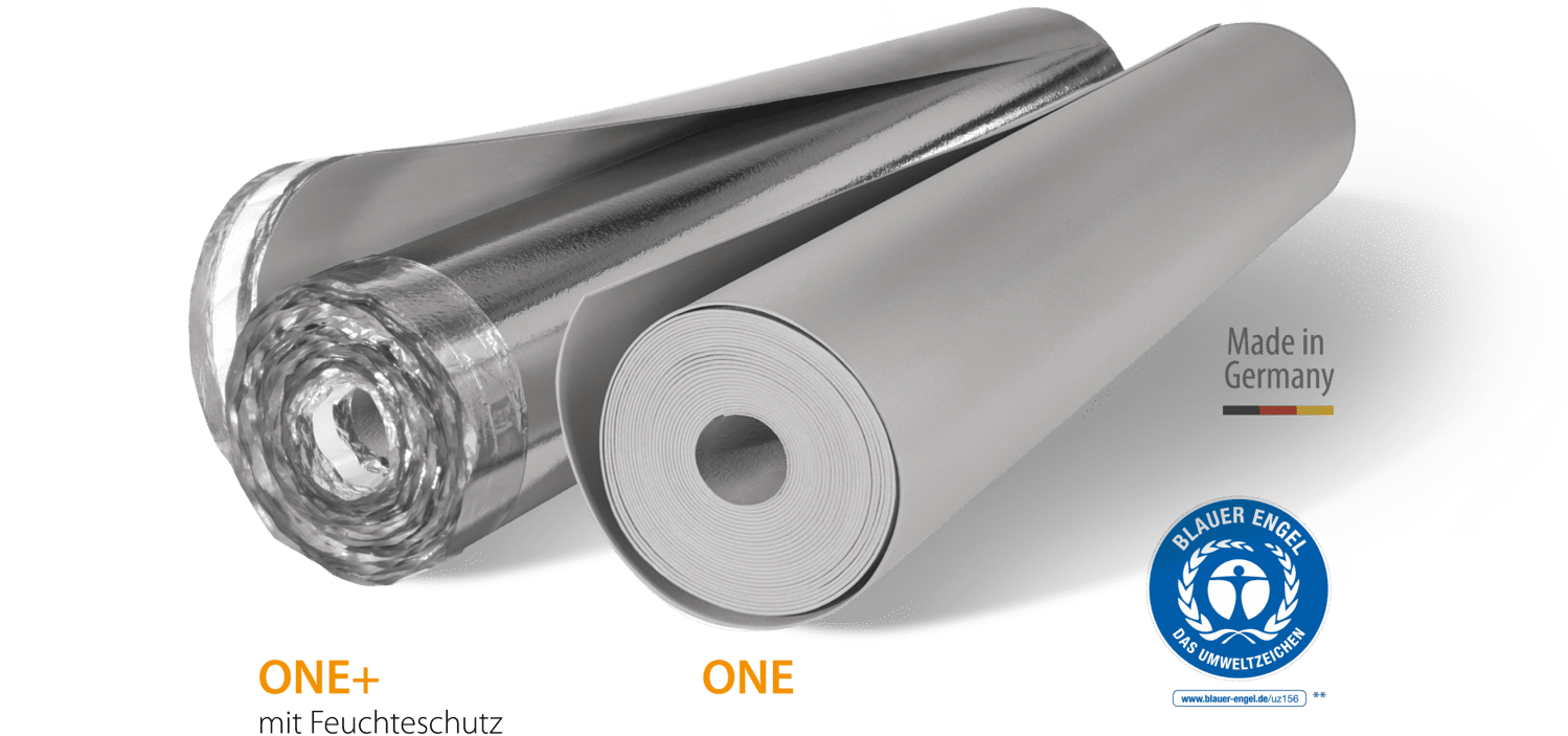 * hier wird das gesamte Oberbodensystem geprüft bzw. beurteilt. Gemessen unter Laminatboden. Werte für Trittschallminderung und Gehschallverbesserung sind nach Normenaufbauten geprüft. In der Praxis können diese Werte aufgrund individueller Bauweisen und Bauprodukte sowie deren Anordnung abweichen.
